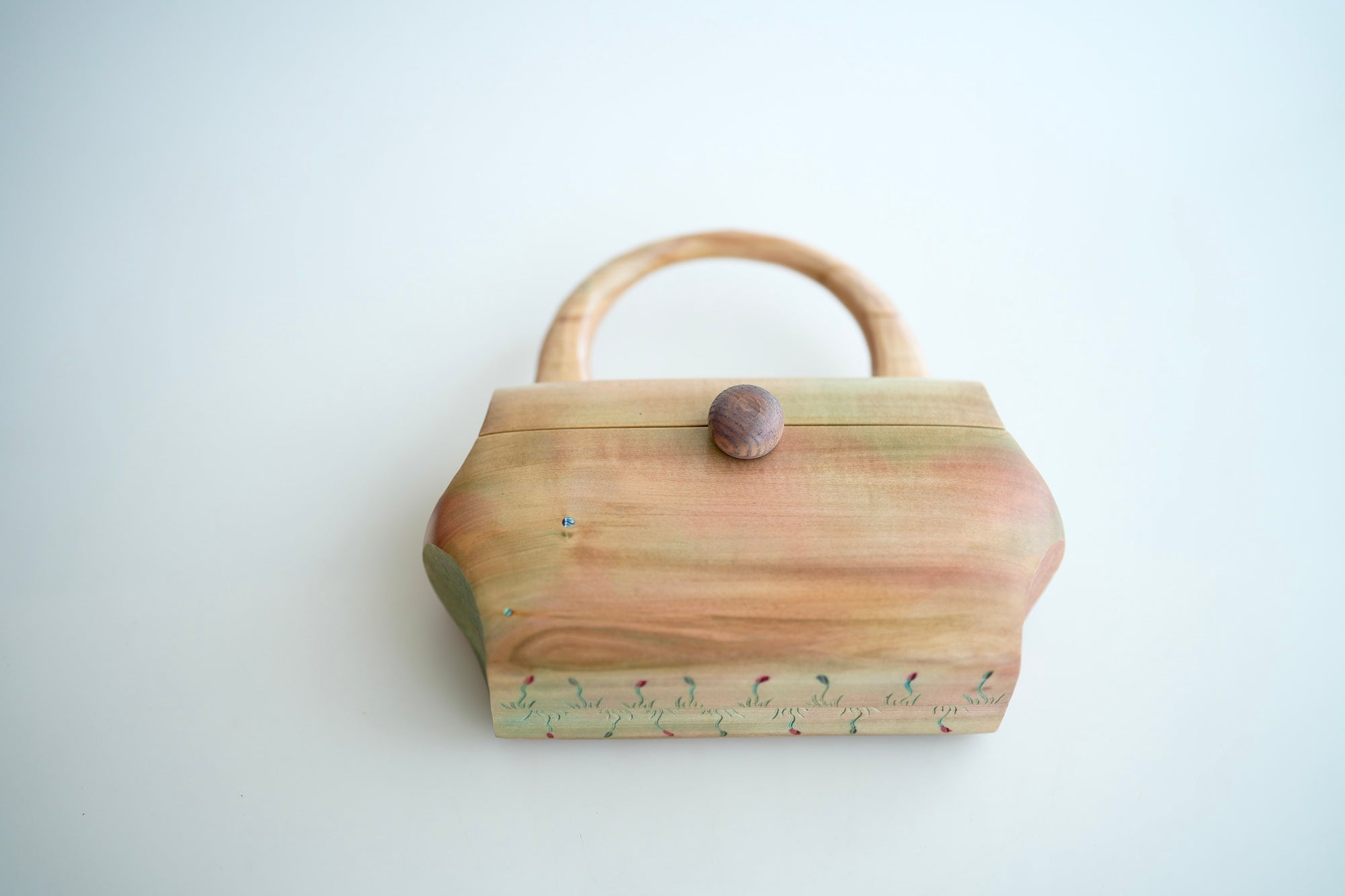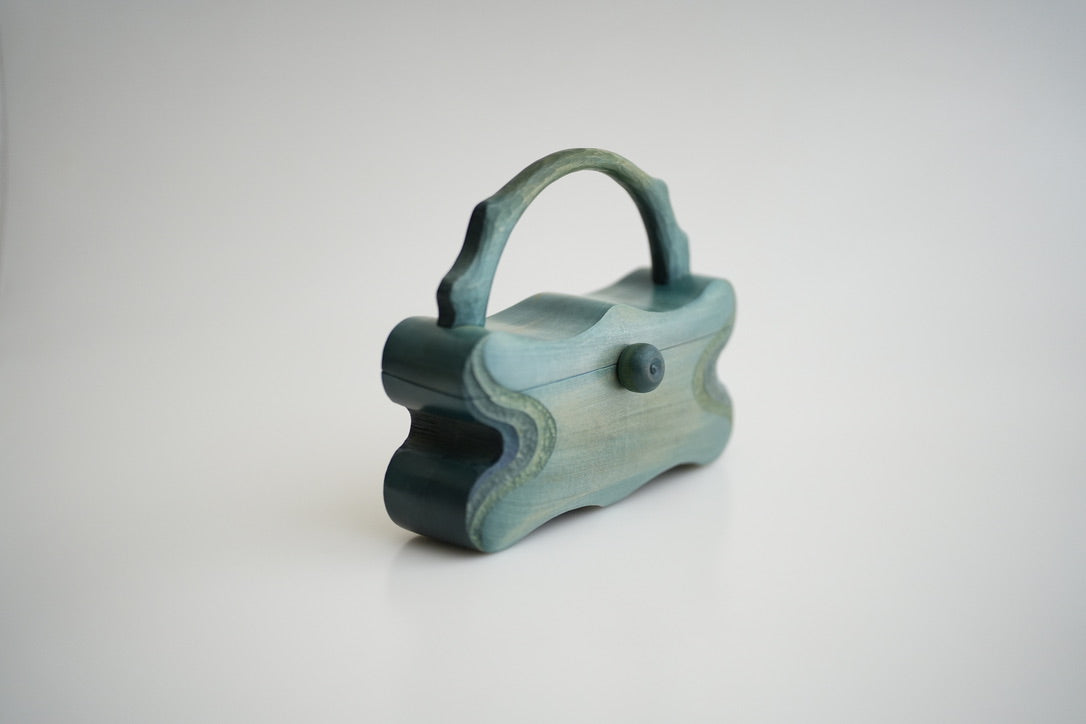 「樹の鞄」は、シナノキという日本固有種の木を用いて、亀井勇樹が作る木製のハンドバッグです。