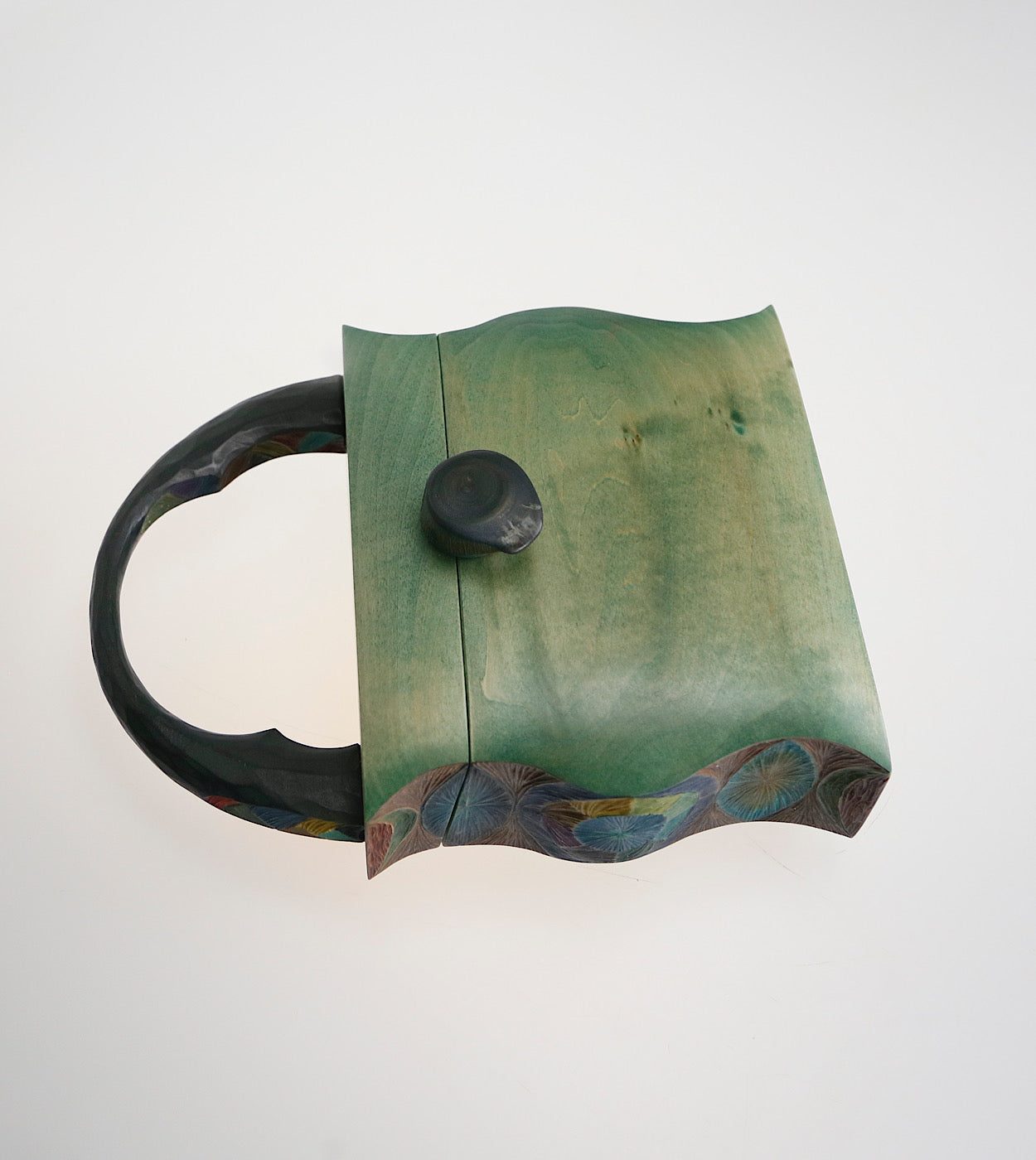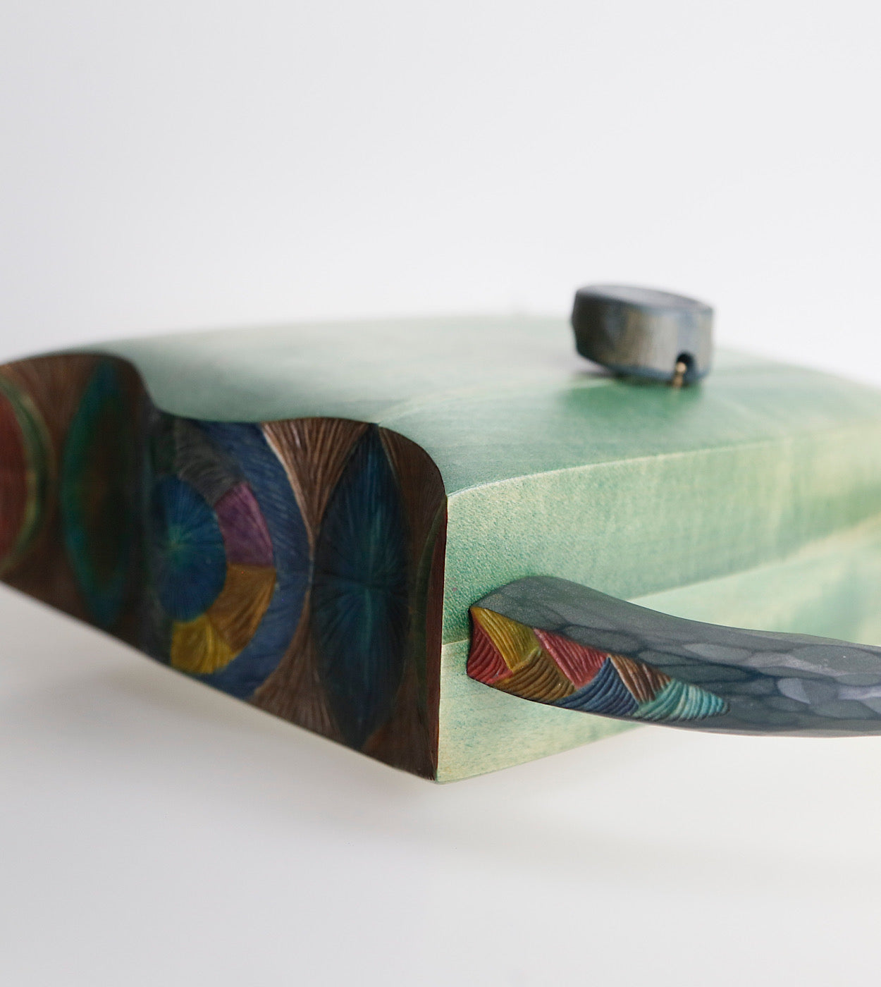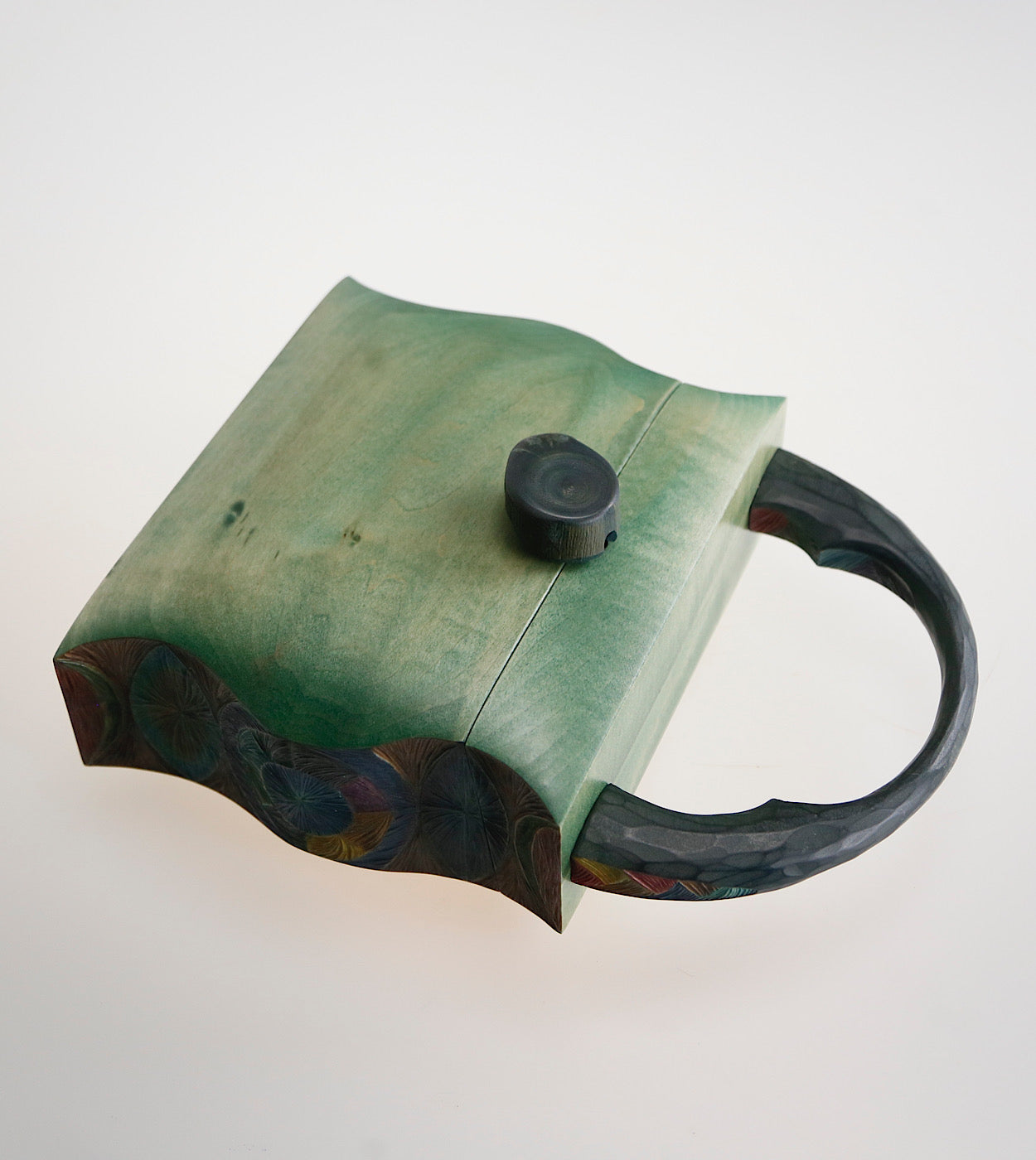 本体:シナノキ (超杢目希少材)   染め+コーティング仕上げ   アート彫り