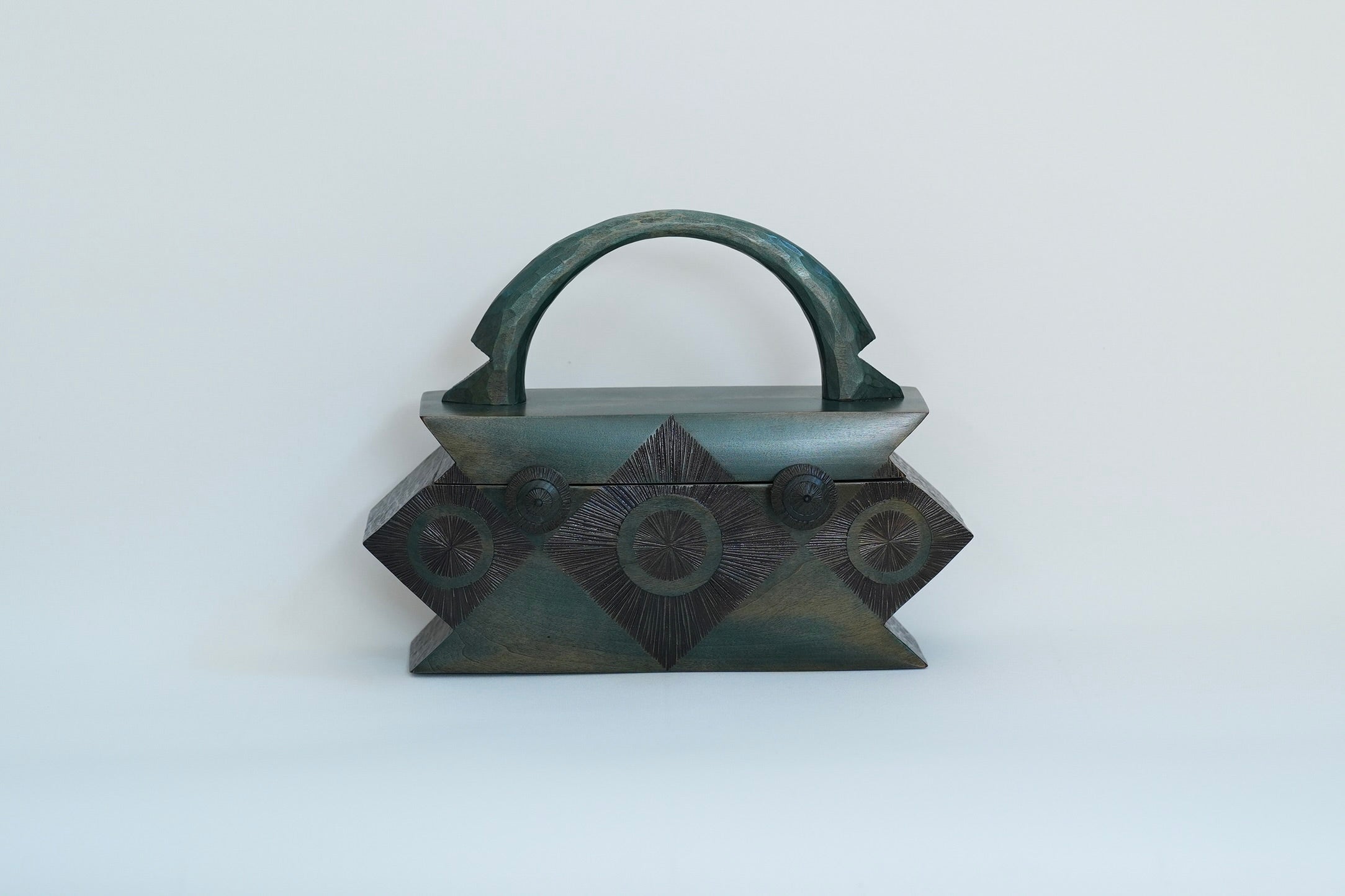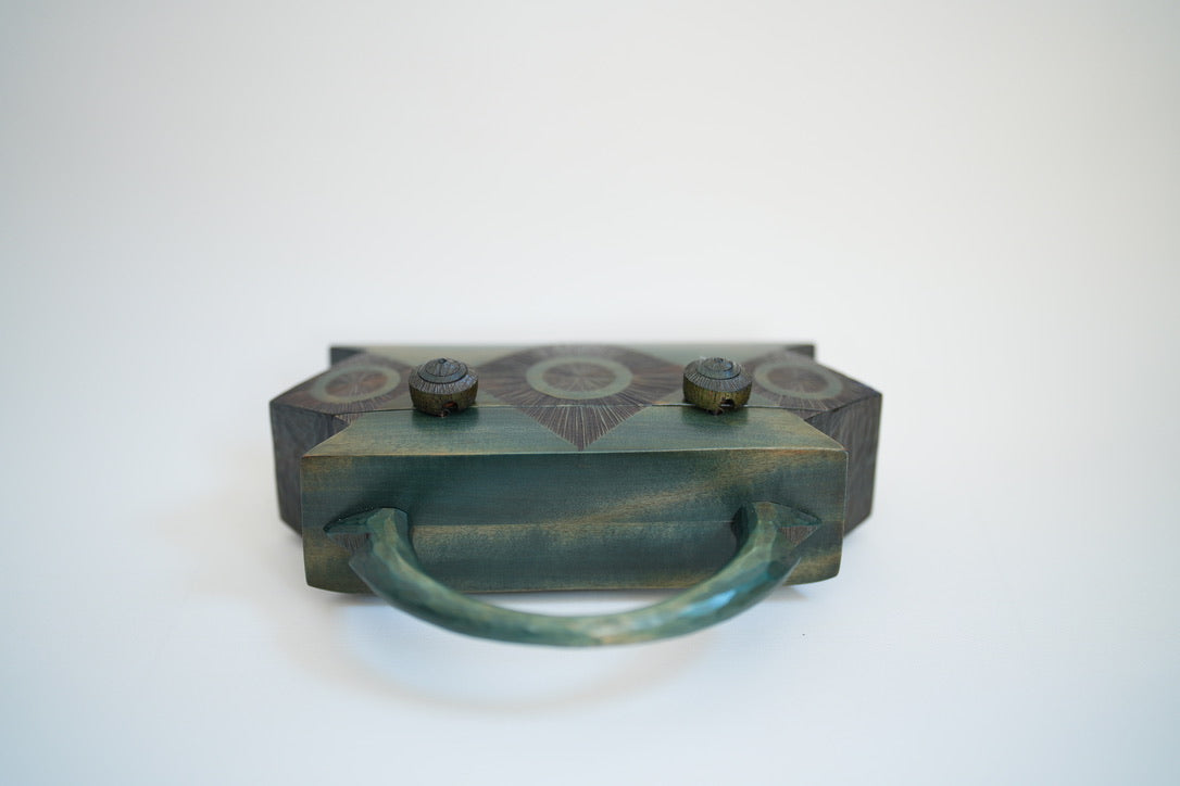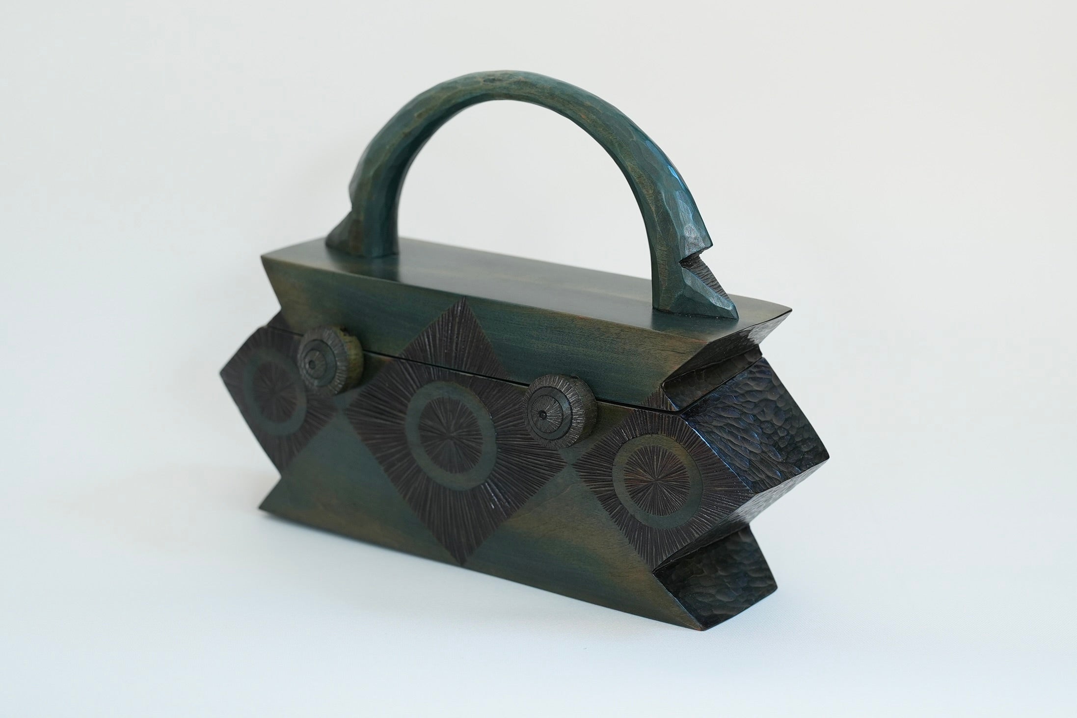 繊細な彫りと大胆なフォルム、染色と拭き漆のこの作品は