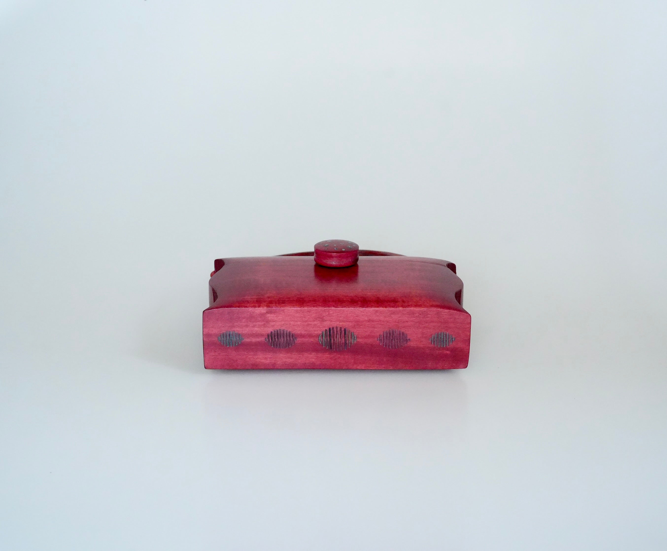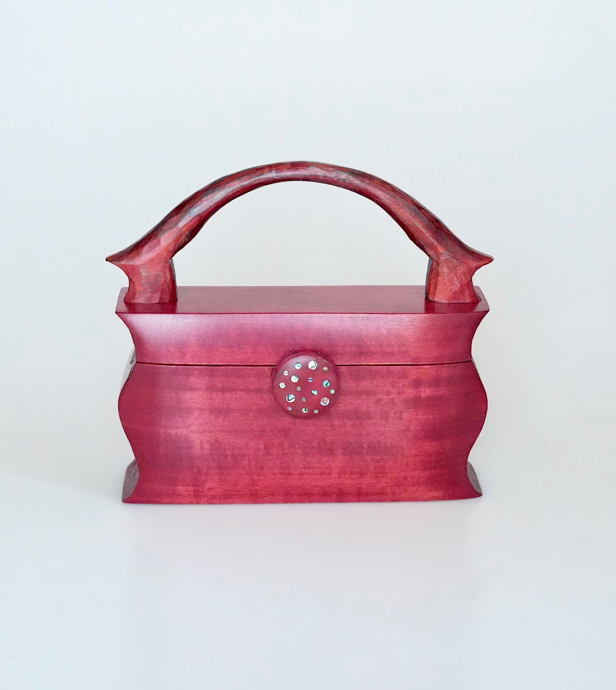 本体:シナノキ、杢目稀少材 染め+コーティング 模様彫り仕上げ