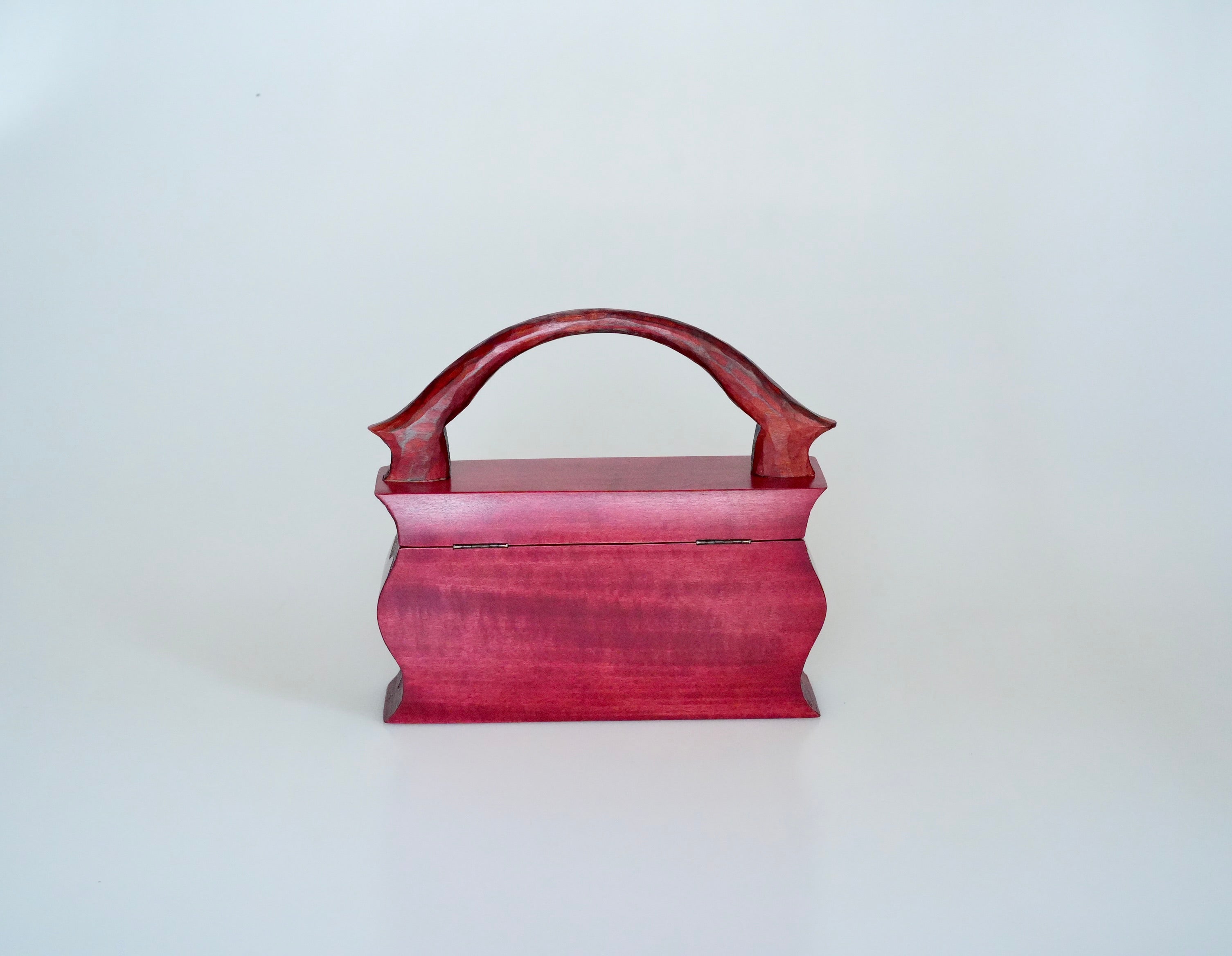 光る美しい杢目の材。複雑な杢目ほど染めを施していくうちに、濃淡が鮮やかに浮かび上がります。ルビー色の自然のグラデーション、深い色味に仕上がりました。